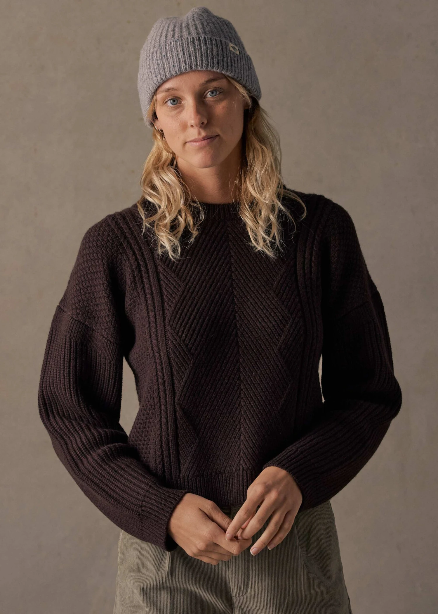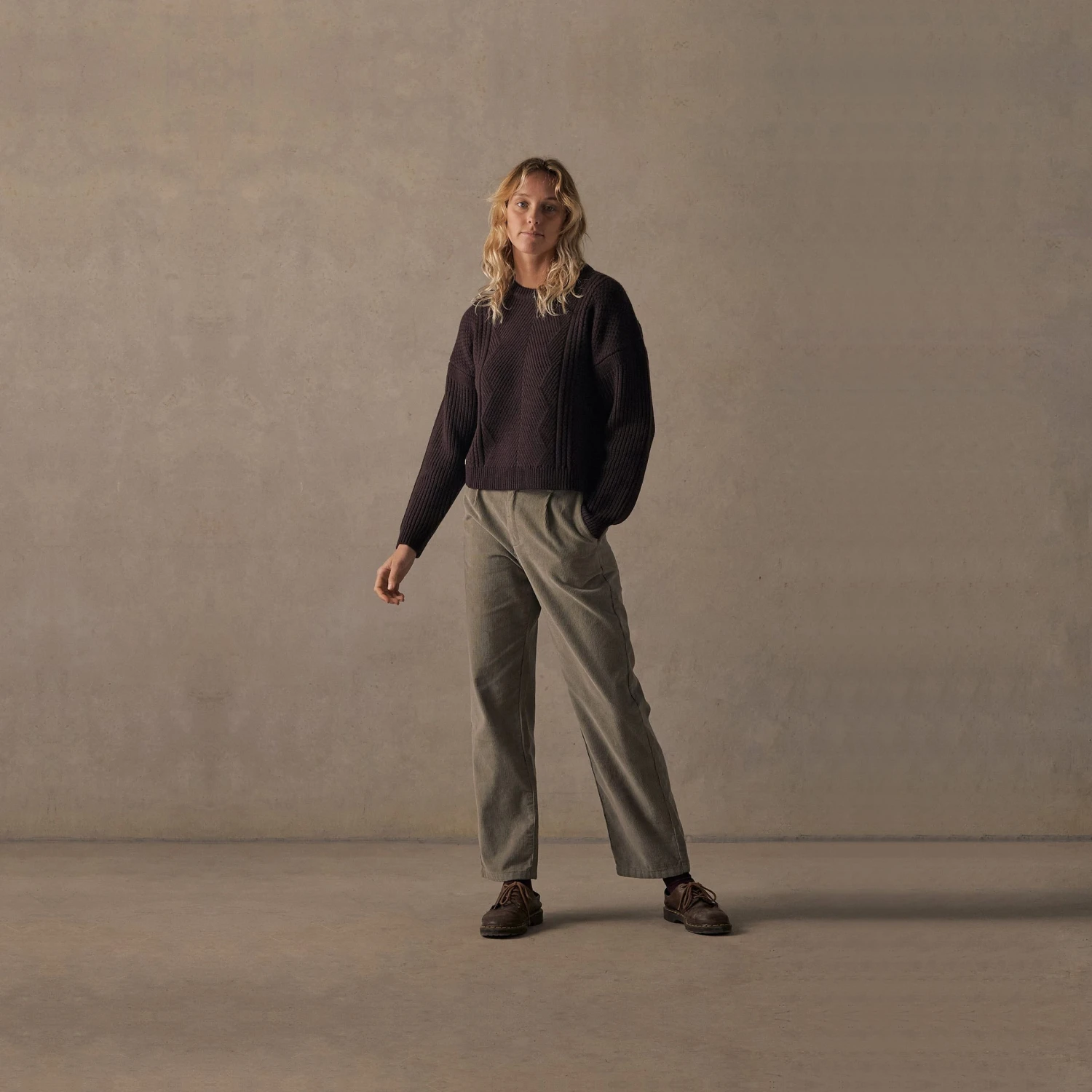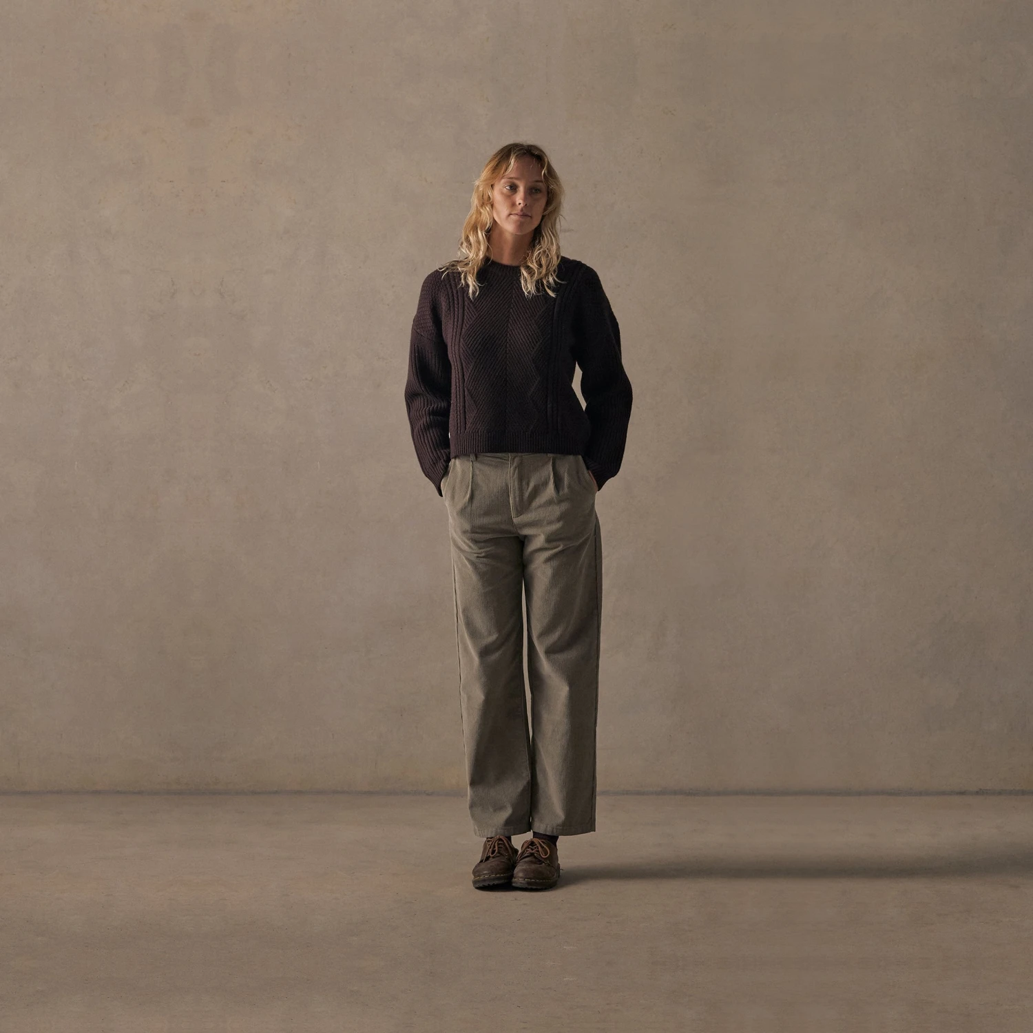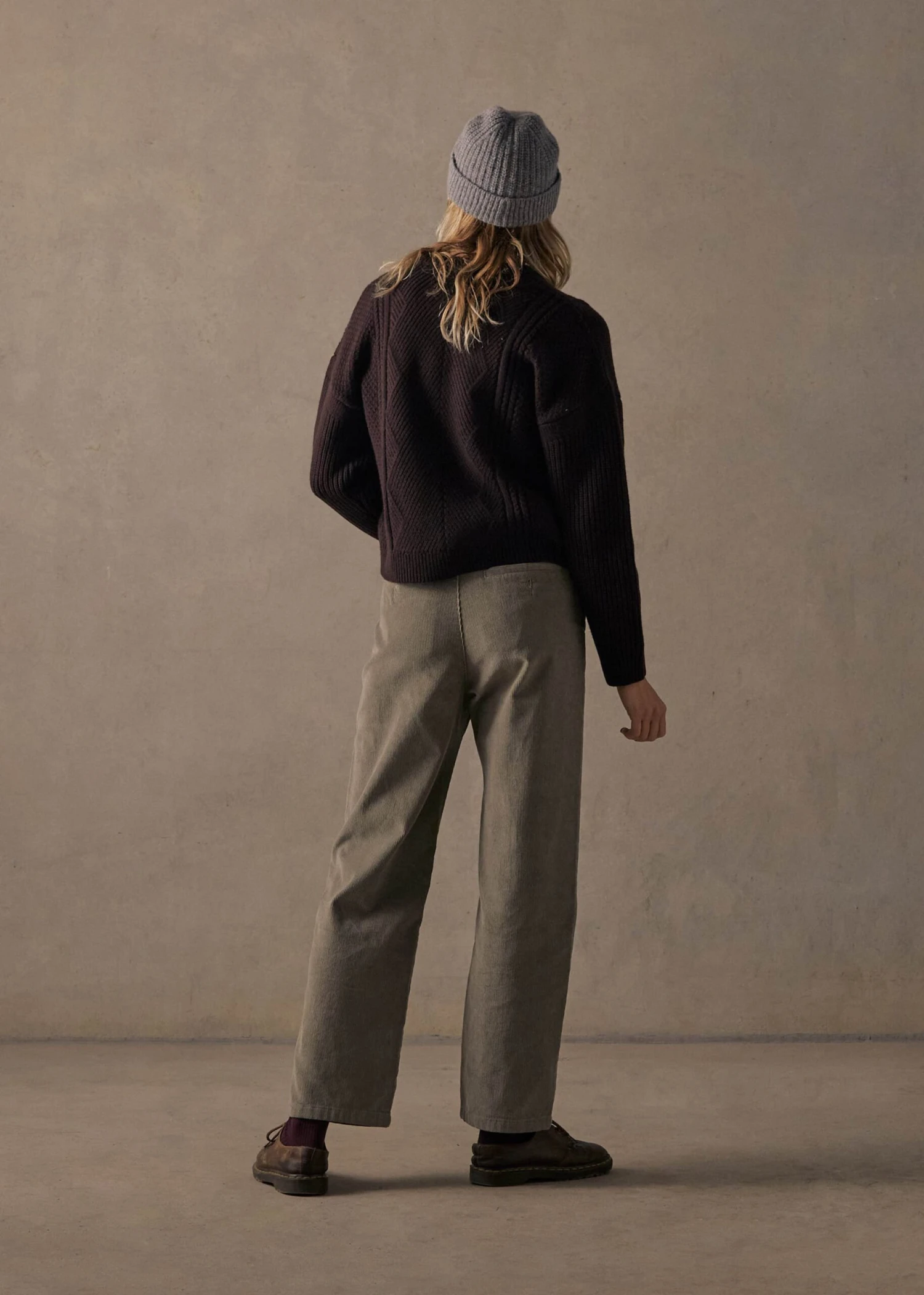 Inspired by an old cable knit you borrow from the back of your grandpa’s closet, this jumper is a nostalgic take on a timeless winter jumper. Crafted from a thick and luxurious merino wool in a classic rich Brown. This sweater is cut in a slightly shorter flattering fit to go with any bottoms.Â