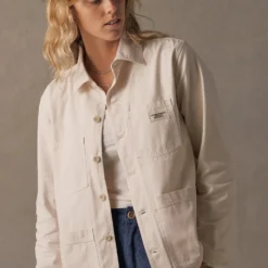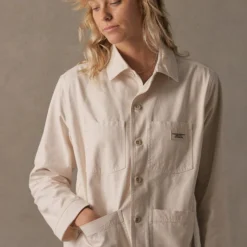 Originally inspired by the dust and resin-covered workwear of our craftsmen, this hard-wearing jacket is a testament to the longevity of canvas. This jacket will only get better over time, continuing to evolve and soften with age. Cut from 100% organic cotton, it is roomy enough to layer up or wear on its own. Available in Porcelain.
