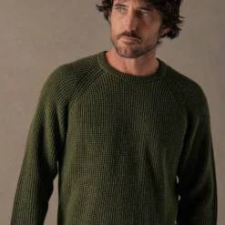 The perfect trans-seasonal crew that offers a satisfying weight for those in between season months. Knitted from premium organic cotton and a touch of cashmere for some extra warmth and a soft-as-anything feel. Available in Ash Green.