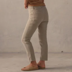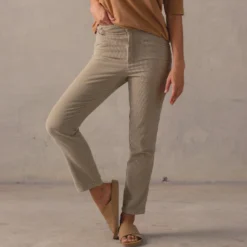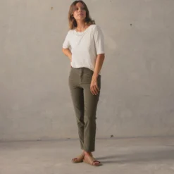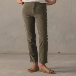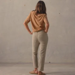 Created from a soft organic cotton corduroy these heritage inspired pants have been pre-washed to perfection to feel familiar from first wear. Featuring a high waist with inverted diamond pocket styling, they?re cut into a universally flattering fit with a straight slightly cropped leg-line. Choose from off-white Pumice or khaki tint Marsh.