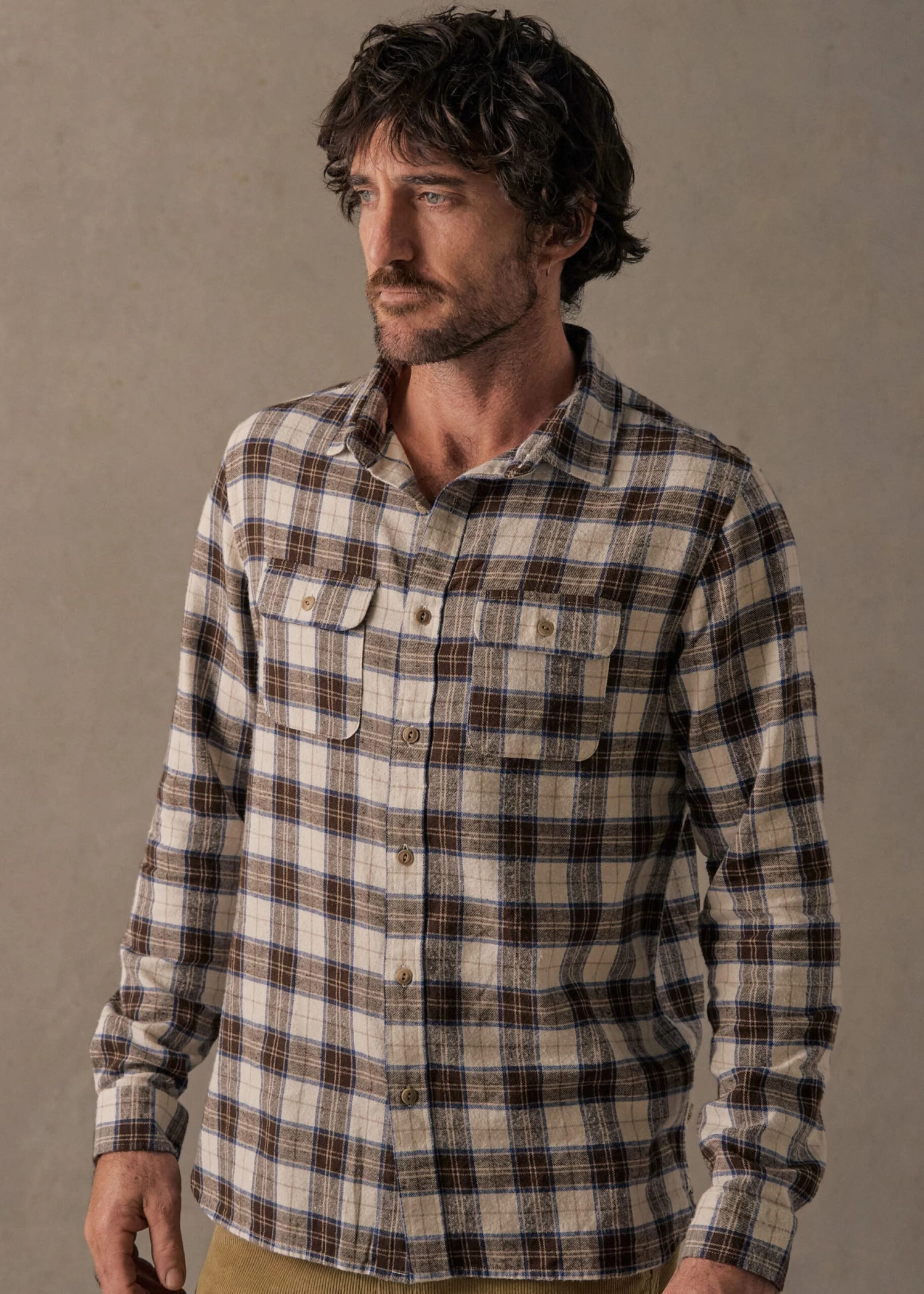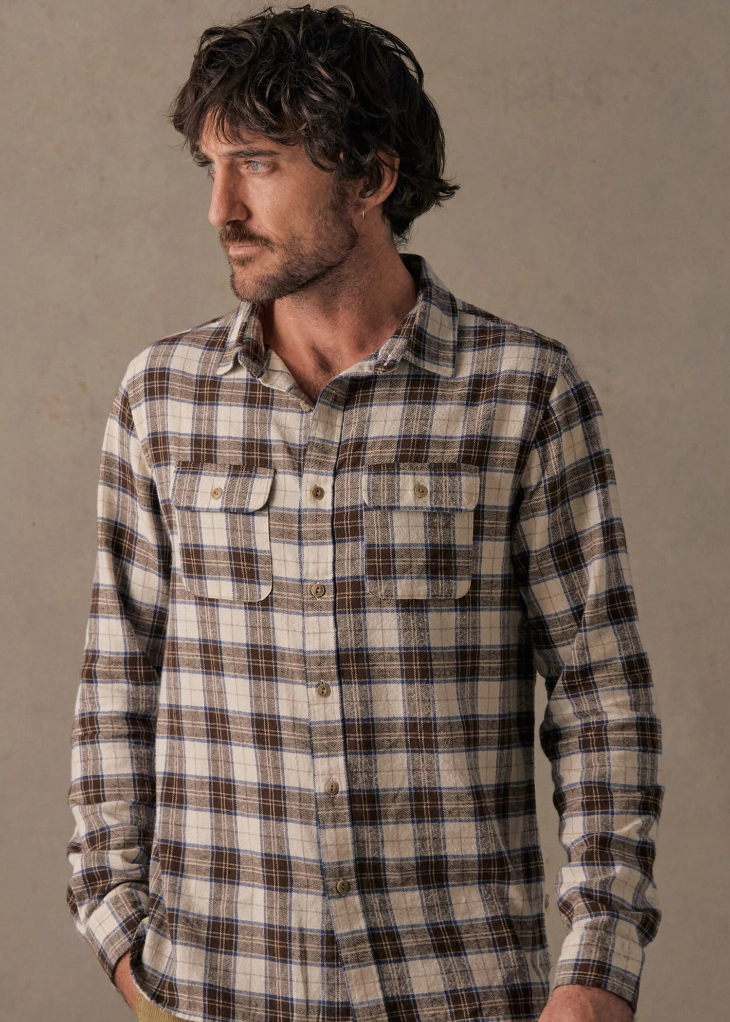 Crafted with lightweight cotton, this Feather- weight Flannel is the perfect carpark thrown on for layering over your favourite tee. A classic checkered cloth with a slightly brushed, soft against-the-skin feeling. Available in Smoke Blue and Brown.