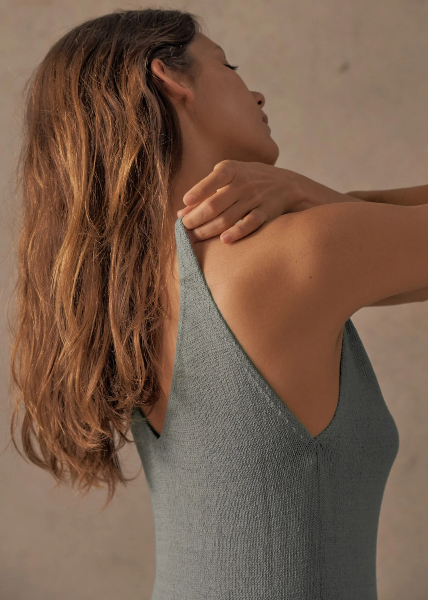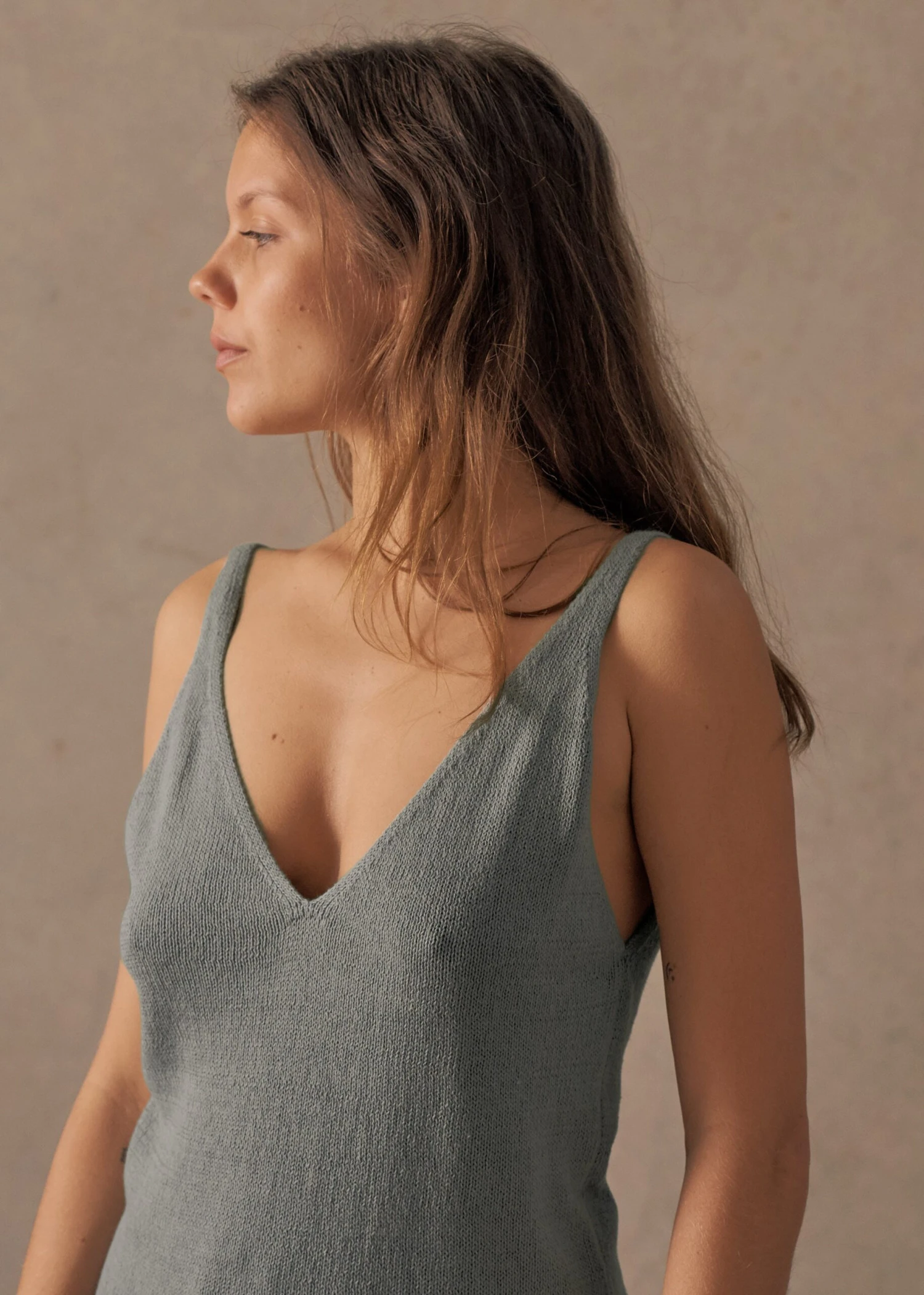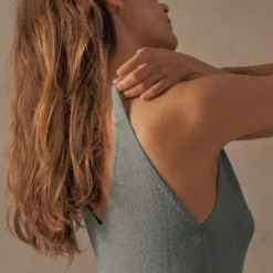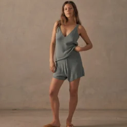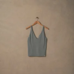 Designed with a plunging deep-V, that works just as well over swim as it does after dark, the Knit Cami is made from a premium blend of linen and cotton – for just the right amount of relaxed drape, shape and softness. Pick from neutral-grey Driftwood and washed Ultra Marine blue.