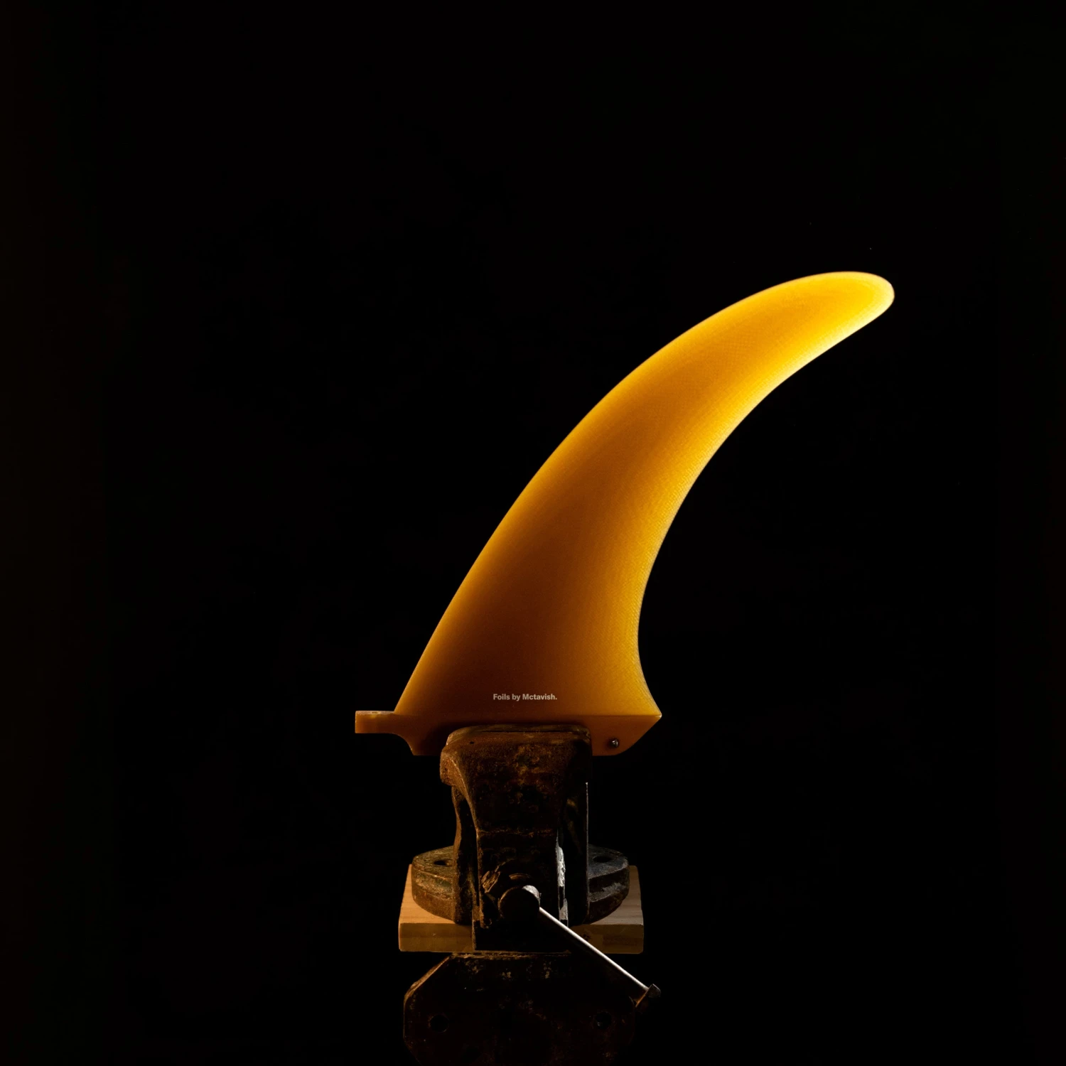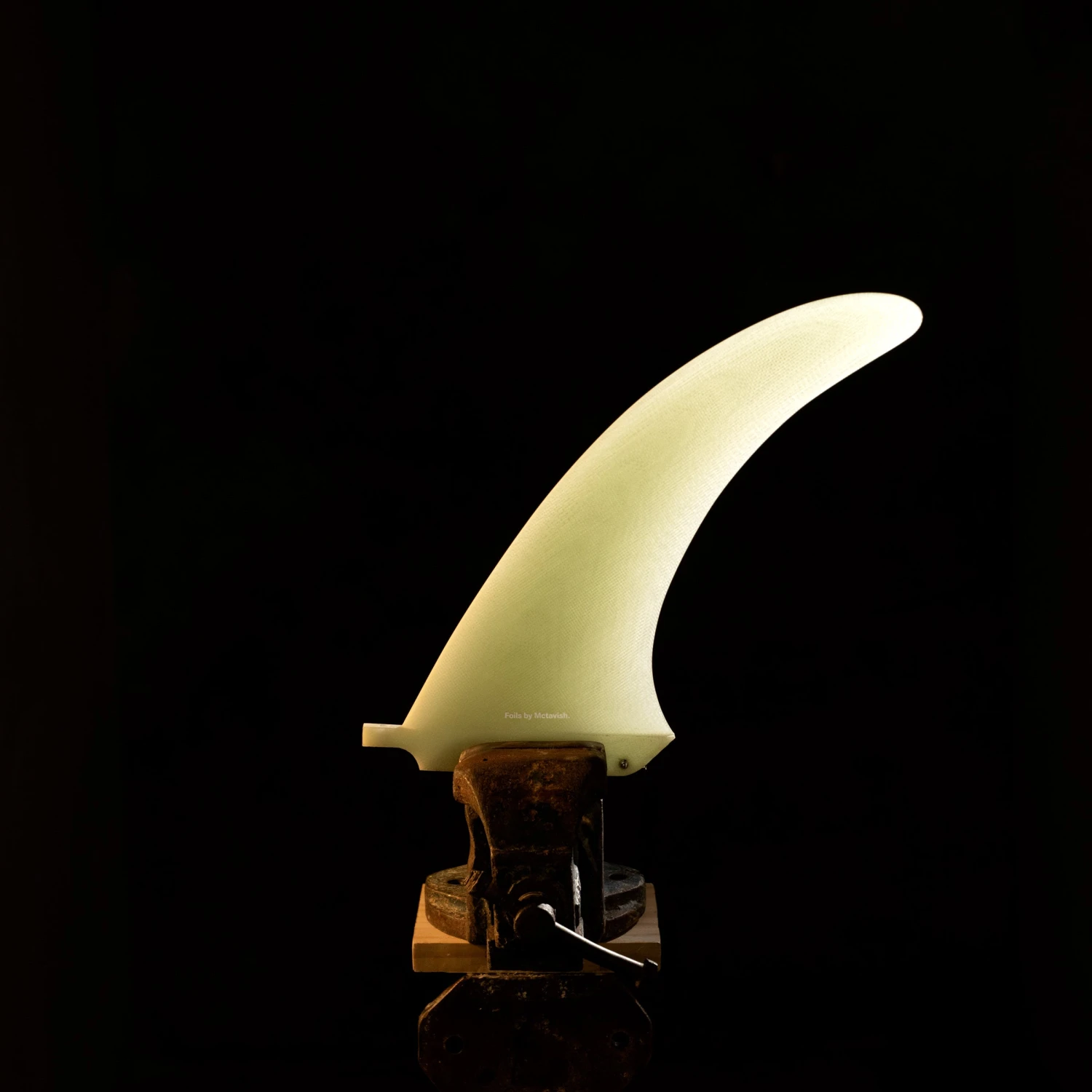 Designed originally for mid-length surfing in 1968. The first version of this template came from a Greenough Stage IV with its tip cut off, making for a smaller upright template, perfect for fuller templated mid lengths. It has a smaller base than the Tracker, lending itself to snappier pivots. The concave taper supplies tip twist and twang, plus highly efficient washout, reducing tip vortex.