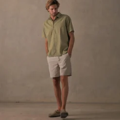 Clean lines, side vents and a slightly more fitted silhouette. The Sea Breeze Shirt is made from a light and airy fabric intended to keep you cool on the warmest days of the year. Choose from misty blue and olivine.