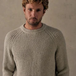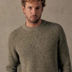 Knitted from one of our favourite Donegal inspired yarns comprised of extra fine wool and alpaca, this richly textured crew offers both warmth and softness. Cut into our signature raglan silhouette it’s available in three super wearable shades; off-white Glacier, Granite Blue and pale green Winter Moss.