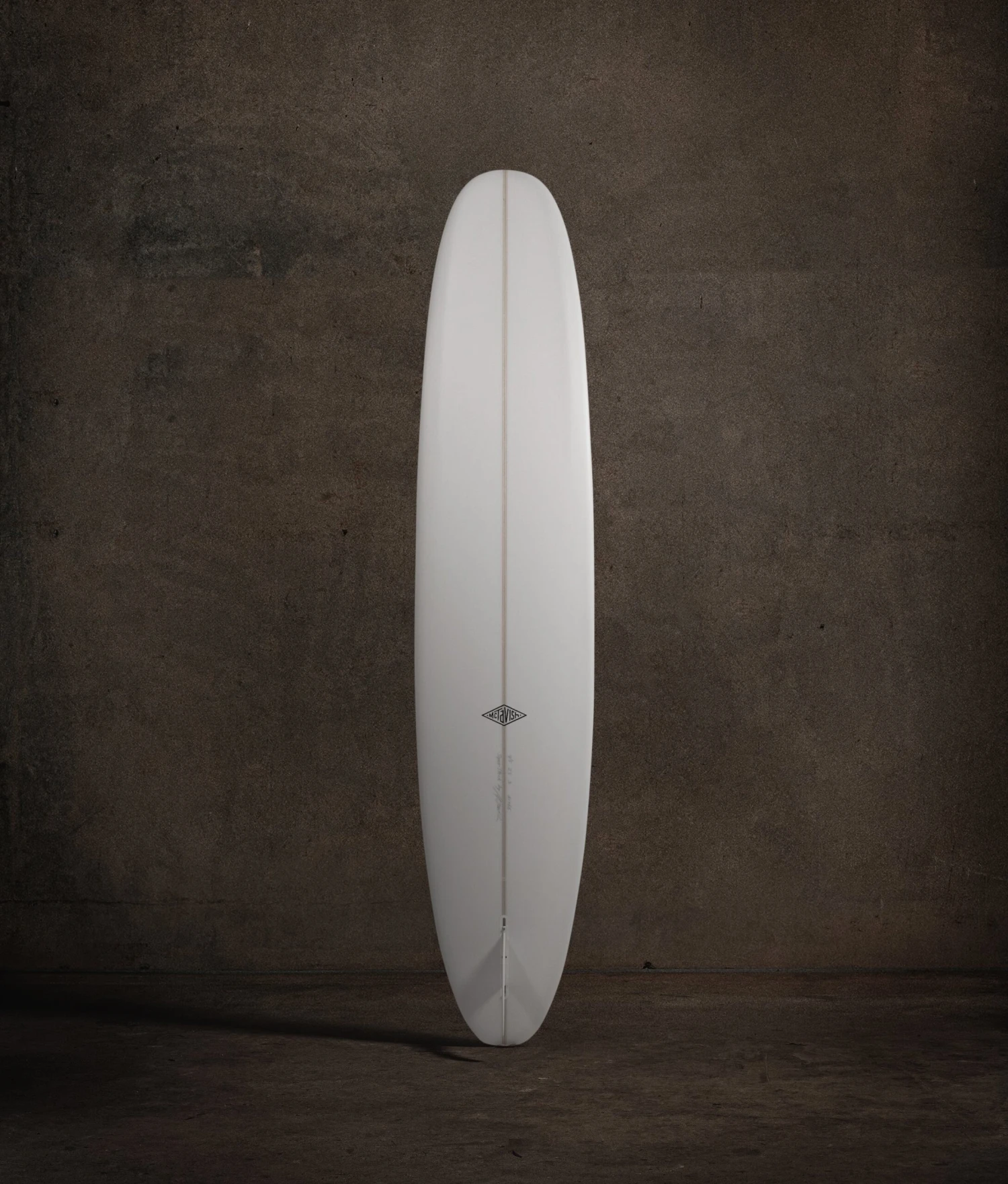 It’s a modernised traditional log with all the best bits of our current models rolled into one. It’s got a shovelled nose and chine rails up front with stability and levitation on the nose, full rolled vee in the back half with the deepest belly in our fleet and a subtle diamond tail. The low, not quite pinched, 50/50 rails and flat rocker provide a fast trim speed while the thinned-out extremities give it a lively nimble feel in all longboardable waves.