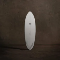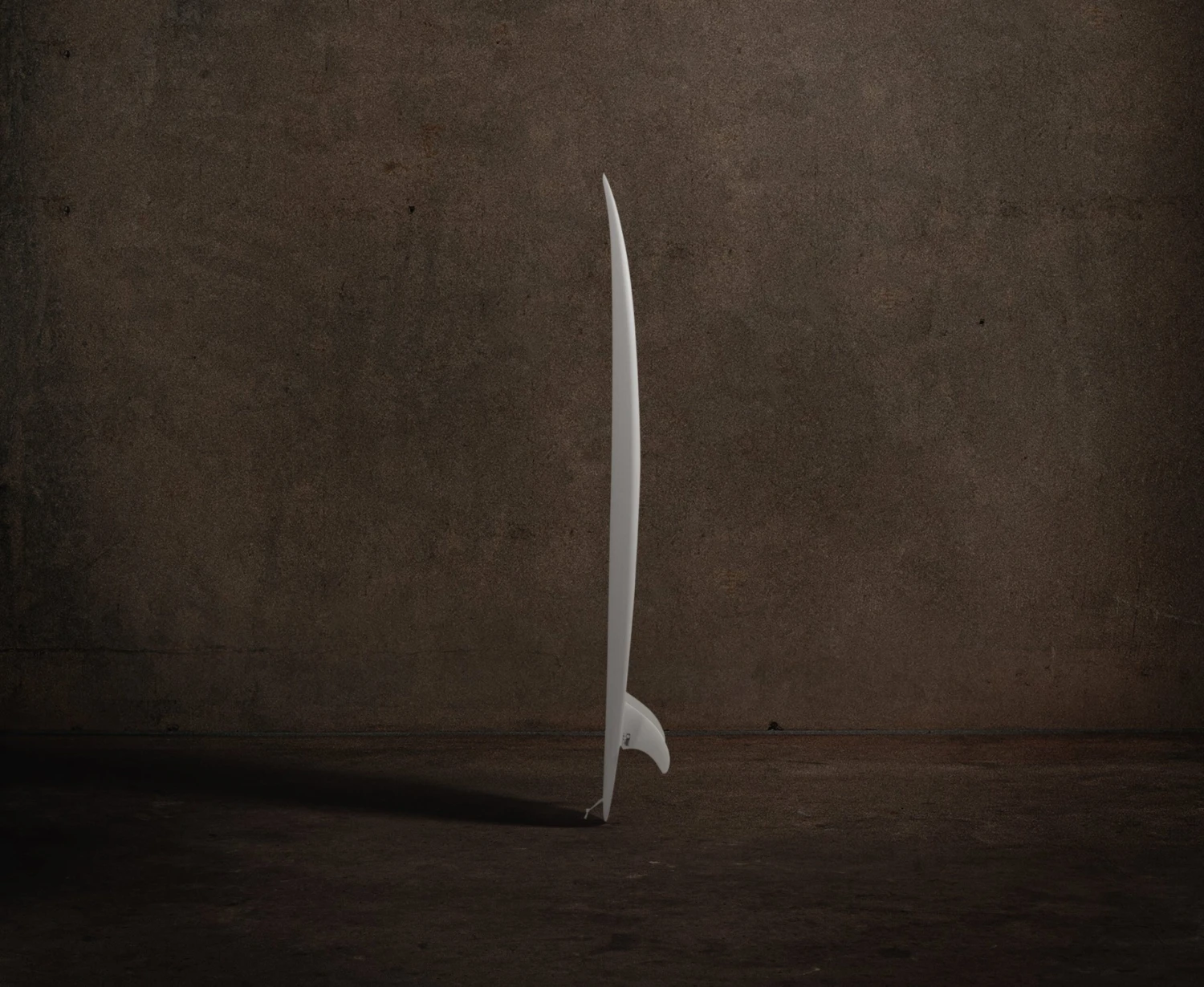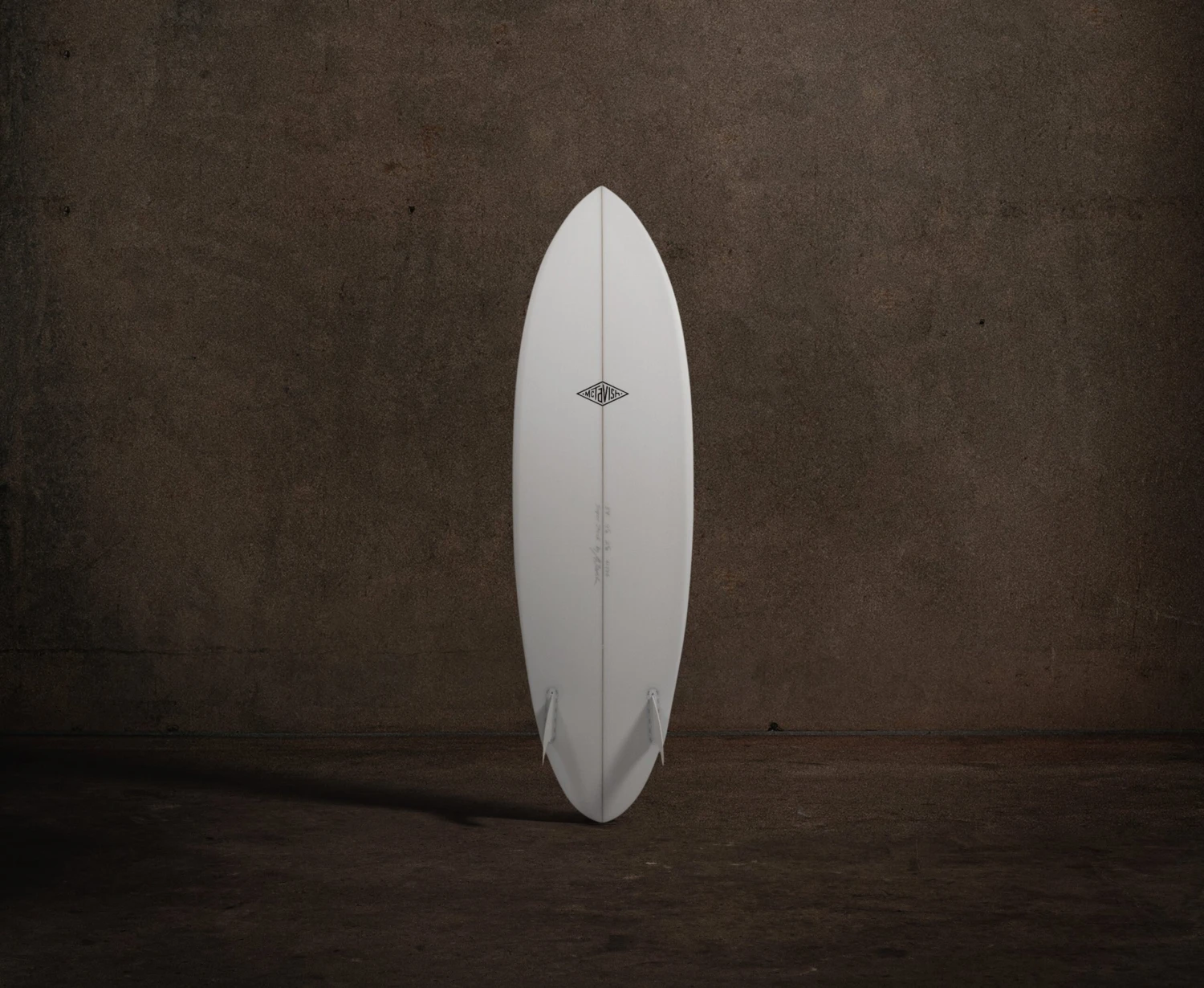 A combo of our favourite shortboard models rolled into one. We borrowed the bottom shape from the Slip; single-to-double concave and vee out the tail, with a forgiving chine bottom rail which helps the wide nose feel narrower and accelerate under front foot motivation. The twin pin setup, a great combo in the El Rayo, provides the reliability and hold of a pin with the looseness of a twin when you want it. It has a fuller outline with a slight cut-away into a flyer to keep the rail line straight between your feet maximising that twinny speed. The beak nose stuffs volume under your chest, and gives it a very McTavish aesthetic. This board can easily be your performance board replacement in grovely to overhead waves but still has the volume to just glide and take a more relaxed approach.